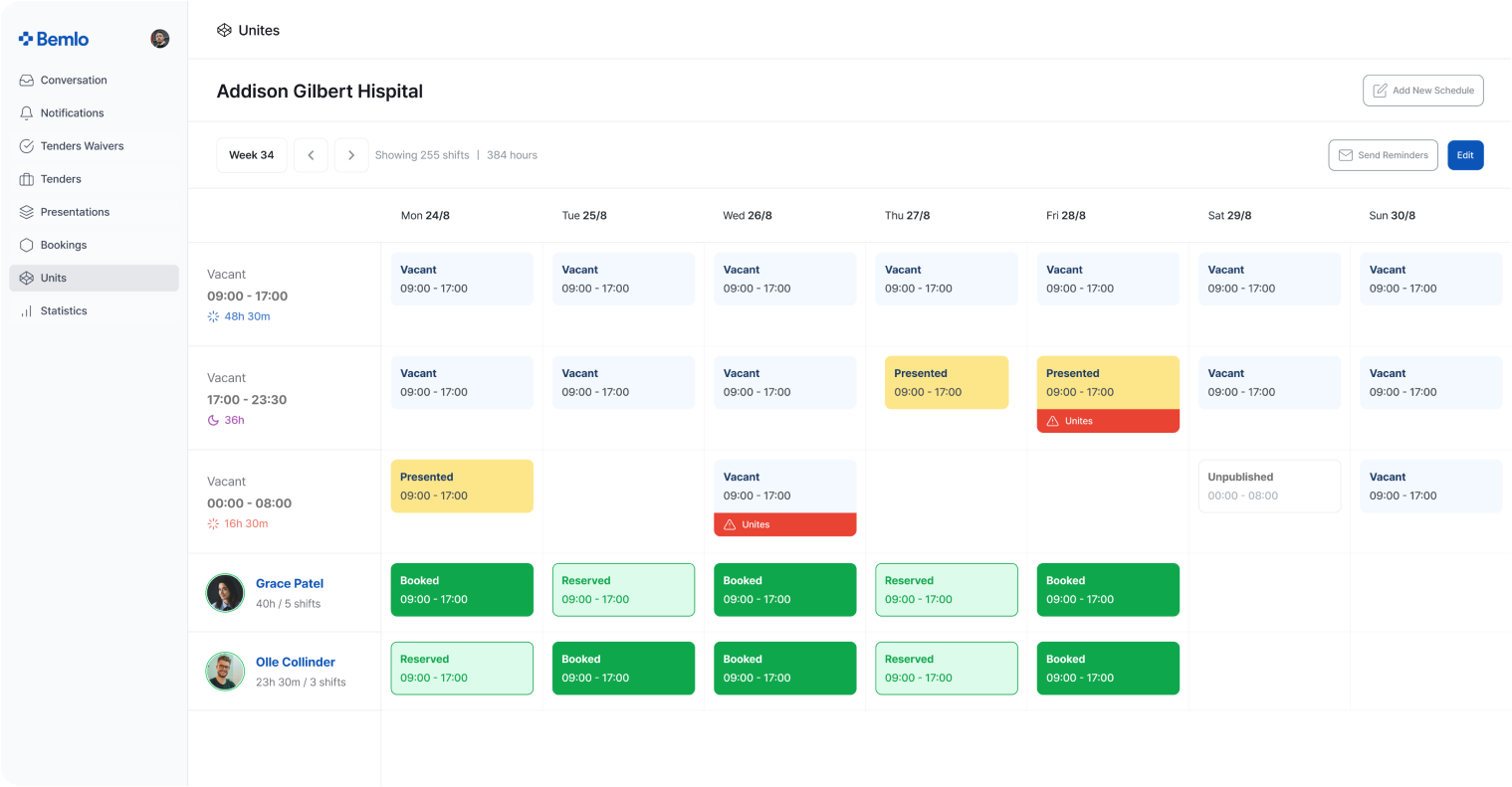 Planlegg både eget personale og bemanningspersonell fra samme grensesnitt – ingen flere permer eller regneark.